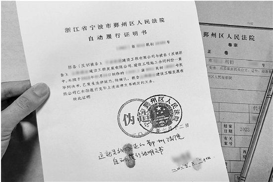 这份“无中生有”的自动履行证明书当即引起了鄞州法院执行干警的注意,其迅速联系邹某,了解该份伪造证明的相关情况。