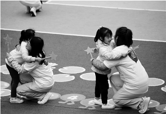 | 3月27日,在北京大学医学部幼儿园,孩子、教师和家长一起表演舞蹈《爱让星光璀璨》。 当日,为迎接世界提高孤独症意识日的到来,北京大学医学部幼儿园举办“携爱同行 为每个生命绽放”主题活动。活动通过制作“星灯”、阅读绘本、舞蹈表演、幼儿绘画展等形式,让孩子、家长、教师关注孤独症幼儿及家庭,传递善意和关爱。 新华社 任超 摄 |