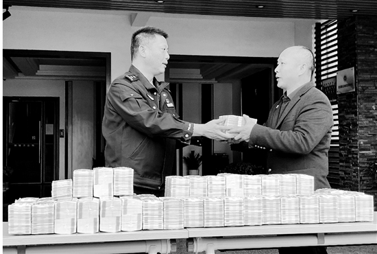 本报讯 3月27日下午,嘉善县公安局举行返赃仪式,返还诈骗案件被害人余先生500万元现金。