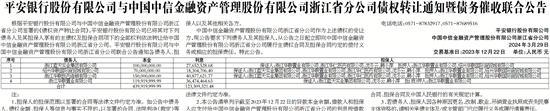 平安银行股份有限公司与中国中信金融资产管理股份有限公司浙江省分公司债权转让通知暨债务催收联合公告