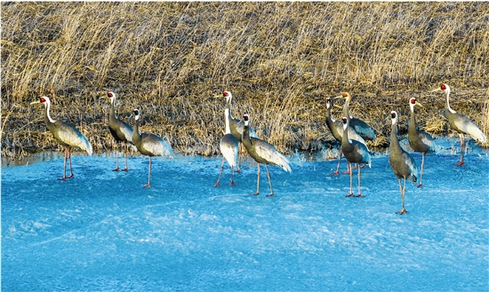 时下正值候鸟北归季,数十只国家一级保护动物白枕鹤和东方白鹳,飞临黑龙江省双鸭山市集贤县安邦河湿地公园嬉戏觅食。