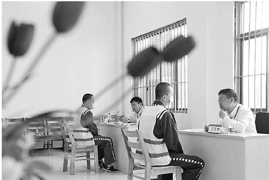 监狱教学楼内被划分成法律咨询、诉求答疑、生活帮困等6块区域,现场专家对60名罪犯进行一对一“辅导”,帮助他们解决改造、家庭、生活上的困惑。