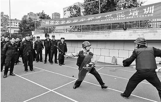 近日,由绍兴市柯桥区教体局组织、柯桥成人文化技术学校负责实施的全区学校保安员春训活动在中国轻纺城小学举行,近600名校园安保人员集中“充电”。区消防救援大队消防员介绍了教学场所消防安全知识、火灾事故的预防和处置等知识,并进行安防实训,进一步提高校园安保人员的安全意识。 通讯员 骆智明