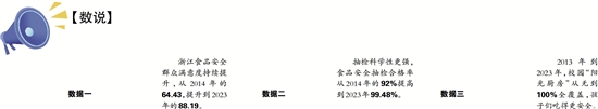 浙江食品安全群众满意度持续提升,从2014年的64.43,提升到2023年的88.19。