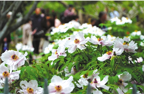 近日,山东省济南市的泉城公园春花盛开,吸引市民和游客前来赏花拍照。