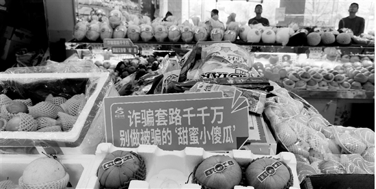 近日,杭州市余杭区五常街道景盛社区创新宣传方式,依托水果店位置好、客流大的特点,把水果店发展成为社区的防诈骗宣传阵地,组织人员联合派出所工作人员定期开展宣传。 通讯员 徐洪