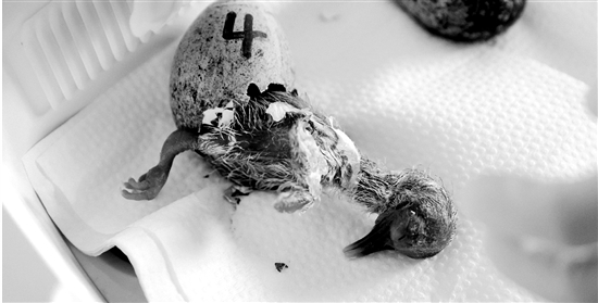 | 朱鹮宝宝出壳 4月13日,德清县下渚湖朱鹮繁育研究基地,工作人员检查刚出壳的朱鹮幼鸟。 当日,下渚湖朱鹮繁育研究基地今年人工孵化的首只朱鹮宝宝出壳诞生,这也是浙江今年首只人工孵化的朱鹮。 每年3-6月是国家一级保护动物朱鹮的繁育期。人工孵化是朱鹮种群抢救性保护复壮的一种繁育方式,能有效提高人工饲养朱鹮种群繁育成功率。 目前,德清朱鹮种群数量已达761只。待孵化季结束,该基地朱鹮种群数量预计可突破800只。 新华社 谢尚国 摄 |