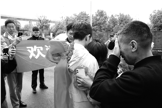 近日,周秋苹夫妇和东园终于迎来了这场迟到了26年的认亲会。“不要哭,我回来了……”东园轻轻拭去母亲的泪水。认亲现场,东园被亲人热情地戴上大红花,“欢迎儿子回家”的红色横幅满是喜庆。“虽然我流着泪,但此刻我很幸福。”周秋苹开心地说。