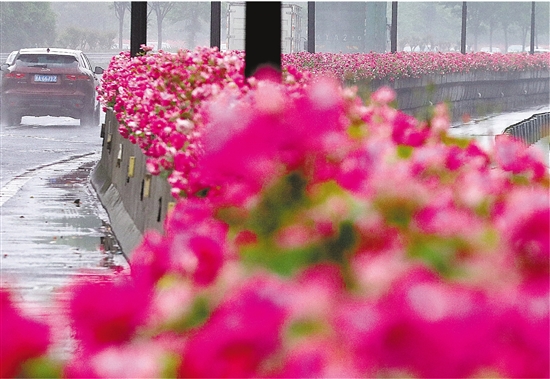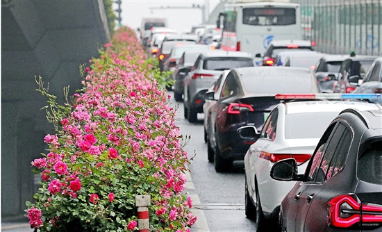 4月17日,在杭州德胜快速路和留石高架路,护栏上的部分月季陆续绽放,姹紫嫣红的“空中花廊”渐入佳境。预计再过一周左右,随着各种月季全面盛开,杭州又将进入“车行高架线,一路花相伴”的缤纷时节。经过十多年努力,如今杭州的月季空中景观花廊已实现高架道路全覆盖,总长度500多公里,总数约215万株。