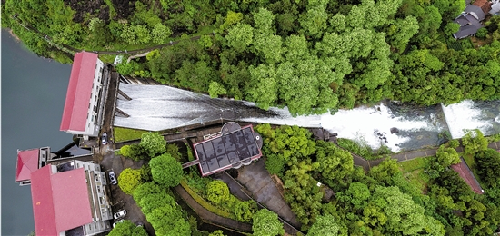 金华入汛以来,不少水库水位持续上涨,均已接近汛限水位。为保障水库大坝和人民群众生命财产安全,连日来,金华不少水库按照上级调度提前预泄,腾出库容,以应对后期的强降雨,减轻防汛压力。图为4月23日,金华市婺城区莘畈水库正开启全部3孔闸门泄洪。