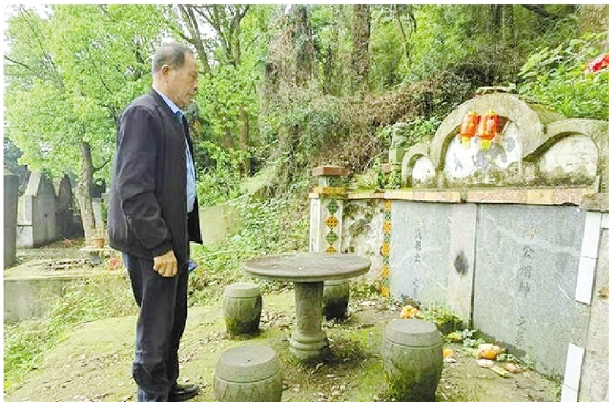 | 尚夏生站在父亲墓前,告知三叔的遗骸被找到了。 胡宗昊 摄 |