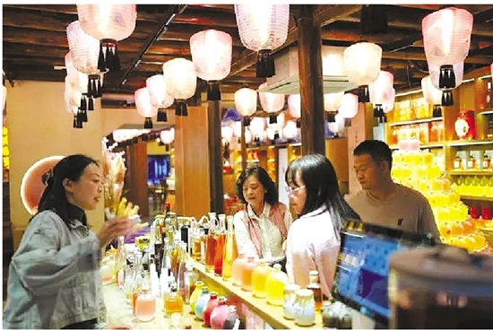 目前,仓桥直街有100多家商户,各有特色。记者了解,仓桥直街招商不搞“价高者得”,而是优先支持老字号和青年创客入住,注重传统文化资源植入,形成了具有绍兴辨识度的传统餐饮、特色小吃、黄酒衍生产品、书画、服装、饰品、民宿等多种业态,还有不少文化设施。“业态丰富了,游客就不会觉得单调乏味。”黄夏峰说。