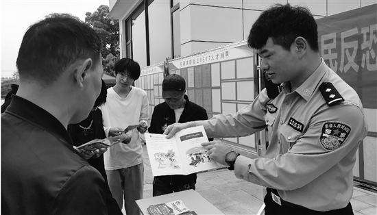 近日,温州龙湾公安星海派出所民警叶子标来到置信广场“摆摊”,向过往群众发放反恐知识宣传手册,并面对面细致讲解其中内容。