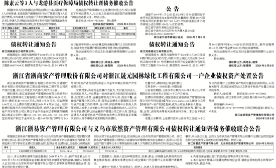 受理公示事项:上述债权自本公告发布之日起10个工作日内受理对上述债权资产相关处置的征询和异议,以及有关排斥、阻挠征询或异议以及其他干扰资产处置公告活动的举报。