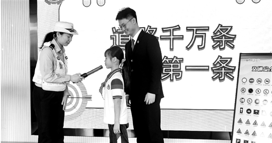 法院满天星宣讲团成员用通俗易懂的语言,讲解交通法规及安全知识。学生收下交通安全倡议书,承诺回家后和家长一起学好“道路交通安全”这一必修课。 通讯员 童思思 单徐翔