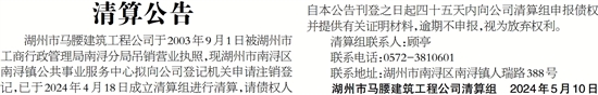湖州市马腰建筑工程公司清算组 2024年5月10日