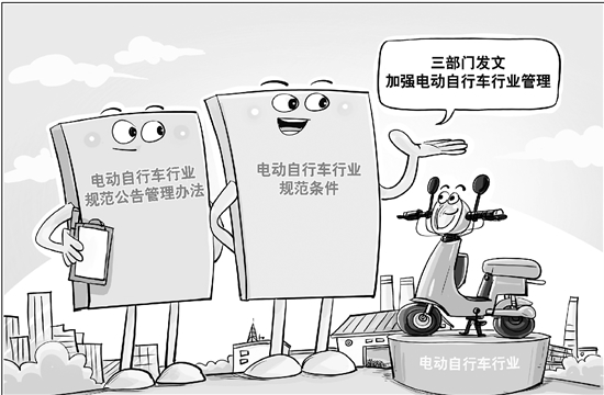 | 记者5月8日从工业和信息化部获悉,为加强电动自行车行业管理,工业和信息化部、国家市场监督管理总局、国家消防救援局三部门印发《电动自行车行业规范条件》和《电动自行车行业规范公告管理办法》,其中规范条件从企业布局、工艺装备、产品质量与管理、智能制造和绿色制造、安全生产、劳动者权益保障、消费者权益保障等七方面提出要求。 新华社 王鹏 作 |
