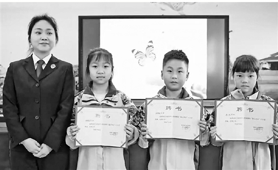 近日,建德市检察院公益诉讼检察官来到莲花中心小学,举行“世界地球日”公益诉讼活动,聘请16名小学生为“益心为公”小小志愿者,让孩子们从小树立爱护环境、保护地球的理念,在全社会营造浓厚的公益保护氛围。