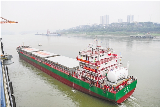 | 5月11日,万吨级江海直达船“创新5”轮抵达重庆江津珞璜港。 5月12日,舟山至重庆江海直达航线首航测试到港接航仪式在重庆市江津区珞璜港举行。万吨级江海直达船“创新5”轮4月24日自浙江舟山港启程,5月11日下午抵达重庆江津珞璜港,这也是万吨级江海直达船首次抵达长江上游地区。“舟山—重庆”江海直达航线是长江上游首条江海直达航线。 … 新华社 王全超 摄 |