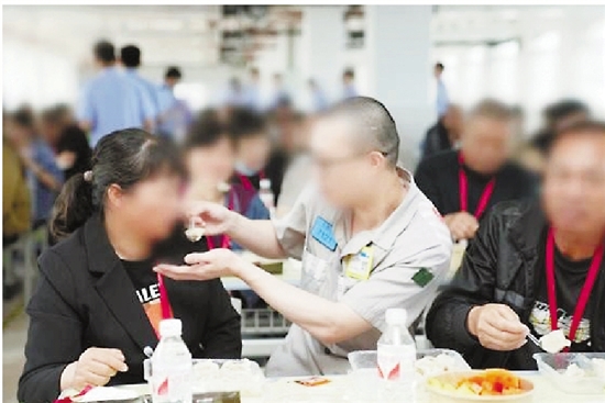 罪犯李某的母亲,牵着孙子在队伍中找李某。“我入狱的时候,儿子还在手上抱着,现在已经长到我胸口高了。”李某一遍遍摸着儿子的头,“怎么会不后悔呢?孩子最重要的成长过程我都缺席了,他几乎不认得我。”话到这里,李某停住了,母亲却上前拉住他的手,“我和小杰(化名)在家里等你。”