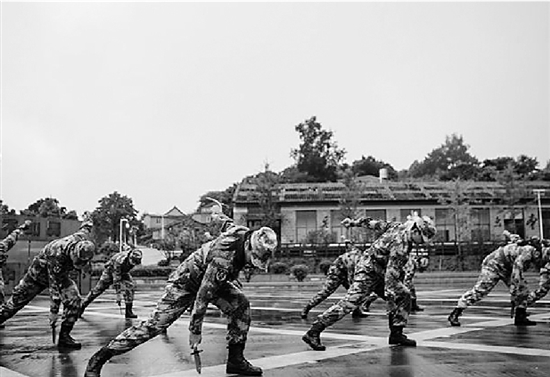 13日下午,采风团来到洞头先锋女子民兵连,一群英姿飒爽的“海霞”们正在练习匕首操,汗水不时从她们秀气的脸庞滑落。