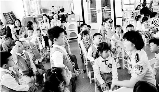 5月15日,临海市公安局杜桥派出所民警和杜街办事处网格员一起,来到杜桥中心幼儿园,开展以“防溺水”为主要内容的安全主题教育,受到孩子们的热烈欢迎。