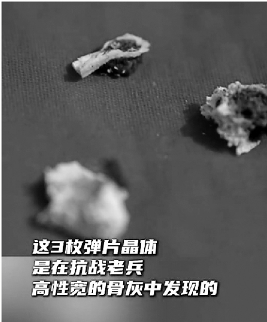 近日,湖北省鄂州市93岁抗战老兵高性宽去世。遗体火化后,殡葬人员在他的骨灰中发现了三枚弹片晶体。