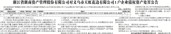 浙江省浙商资产管理股份有限公司对义乌市天虹花边有限公司1户企业债权资产处置公告