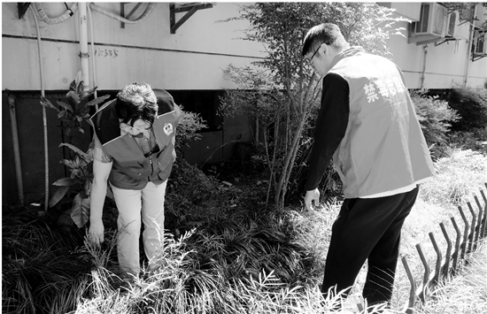 连日来,杭州市拱墅区武林街道积极开展“禁种铲毒”行动。街道禁毒社工和“武林大妈”平安志愿者开展地毯式踏查的同时,向辖区群众宣传“种毒违法、种毒必铲、种毒必究”,筑牢禁毒防线。 通讯员 王琦 摄