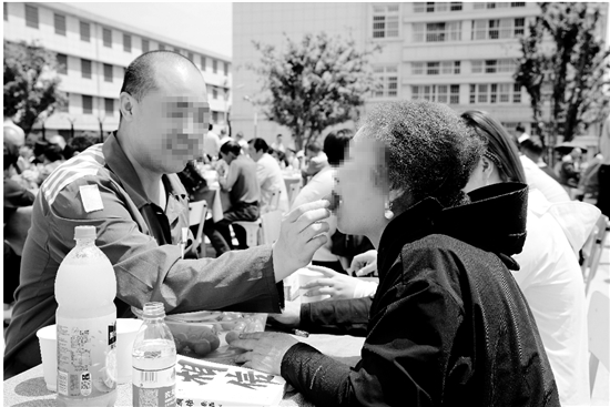 在“感恩有礼”仪式环节,参加帮教的罪犯通过朗诵《游子吟》,向母亲三鞠躬,表达感恩之情,现场许多人流下了泪水。