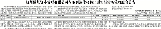 杭州港基资本管理有限公司与董利达债权转让通知暨债务催收联合公告