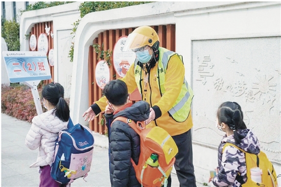 | 美团外卖小哥在学校门口开展志愿护学活动 |