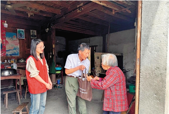 “李阿姨好,早上刚下过雨,路面比较湿滑,你晨练时可要当心些呀!”前不久,杨村桥村网格员王昭萍一边热情地和晨练老人打招呼,一边提醒他们注意安全。