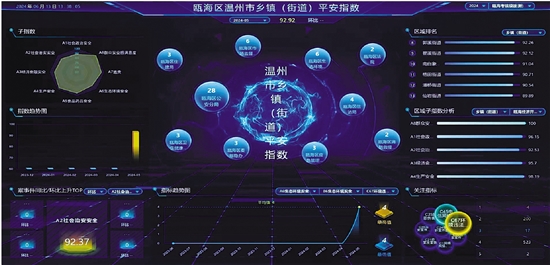 如今,瓯海区的每月动态监测,能客观真实地反映各镇街、村社的社会平安状况和平安建设工作成效;同时,在多平台同步公示投放,让群众通过平台就能掌握所在街道、村社的治理指数,共同参与基层平安建设。