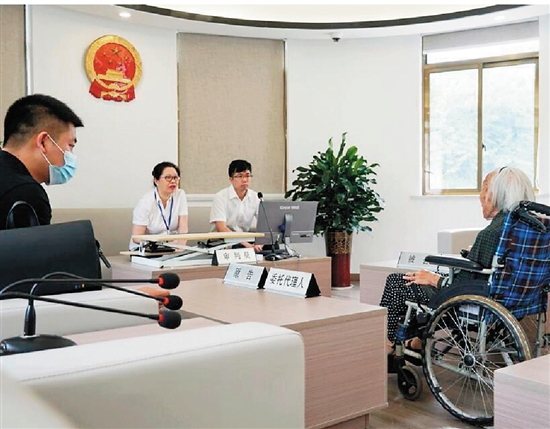 “要是没有你们,我都不知道怎么办哟!”在鹿城法院东郊人民法庭“适老扶弱诉讼专区”,一位坐在轮椅上的银发老奶奶连连向工作人员道谢。