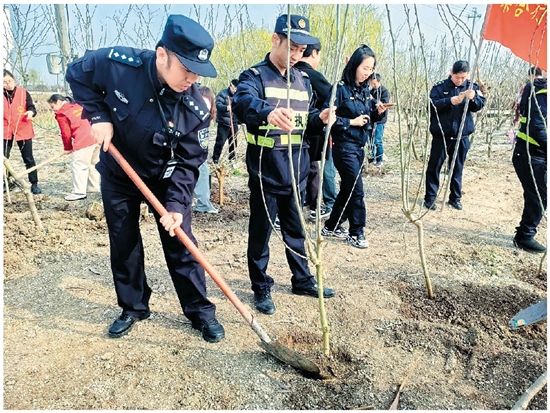 植树活动现场,和孚镇团委、农业、综合执法等部门和群众代表分工协作,相互配合,场面繁忙而有序。一棵棵新栽种的桑树苗在和煦的春风中傲然挺立,焕发出勃勃生机。