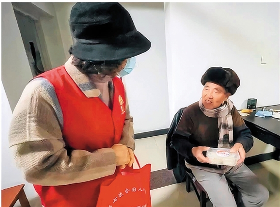 “张奶奶,快来尝尝我们刚做的青团。”4月初,硖石街道竦秀社区工作人员和志愿者给辖区老人送上时令美食。
