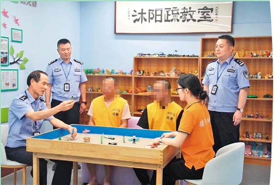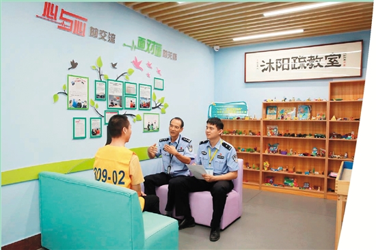 近3年来,诸暨市委政法委牵头,联合检察、法院、信访、司法等部门,吸纳平安类社会组织等社会力量,通过“谈、教、引、化、帮”五字工作法,建立“管教民警+沐阳疏教工作室人员+医生”身心兼治的“一体化”管教模式。