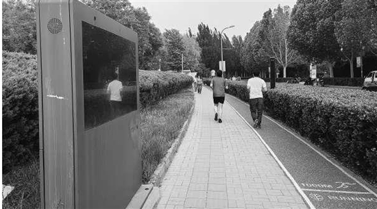 智能设备“黑脸”的场景,还出现在西二旗附近的环湖西路上。环湖西路周边,有多家科技型企业。路侧一条宽约半米、全长约2600米的跑道,是不少人跑步的不二之选。约三年前,步道经过“智慧改造”,在多处点位上,安装了可供查询天气、地图导航的显示屏以及可显示运动里程、排名、用时、瞬时速度等信息的“打卡杆”。不过在跑道起点左侧,一个较大的显示屏已完全“黑脸”,十米开外的“打卡杆”仍能运作,显示着跑者图案以及“今日里程180m,速度0m/s”等信息。而在跑道的1000米处,无论左侧的显示屏还是跑道右侧的“打卡杆”都无法工作。
