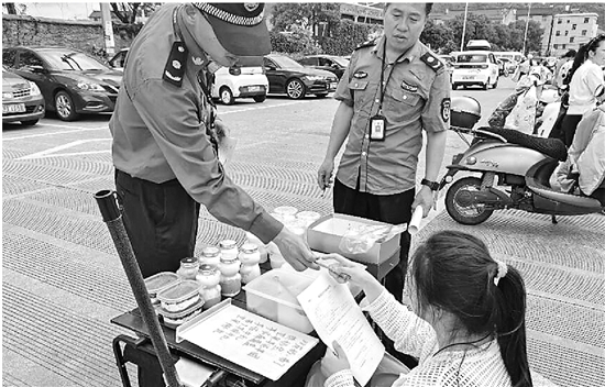 六一儿童节临近,天台县坦头镇综合行政执法队就校园周边安全展开集中整治,对食品、文具、书籍等开展一次综合性检查;同时在上下学时间段,积极整治校园周边秩序,确保交通畅通。 通讯员 王晓鹏
