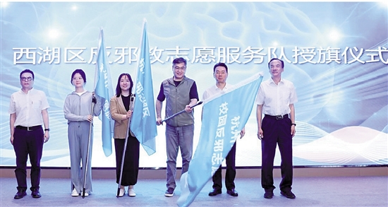 近日,由杭州市委政法委、杭州市反邪教协会指导,西湖区委政法委、西湖区反邪教协会主办,西溪街道办事处承办的2024年“反邪同心 平安同行”杭州市西湖区防范邪教宣传月启动仪式暨《科学与人》脑科学反邪直播活动举行。浙大附中、杭州市保俶塔实验学校的学生们带来了精彩演出,向大家介绍邪教的危害。科普反邪志愿服务队、心理反邪志愿服务队、校园反邪志愿服务队组成的区反邪教志愿服务队现场领旗。活动还通过《科学与人》访谈直播,吸引10万余人次观看收听,进一步提高群众警惕性。 通讯员 徐昀雯
