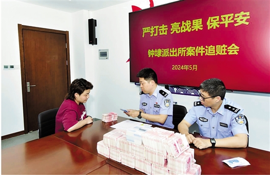 近日,平湖市公安局钟埭派出所对前期侦办的一起电信网络诈骗案件追回的220余万元开展赃款发还,其中线上发还95万余元,线下发还125万余元。 通讯员 谢远远