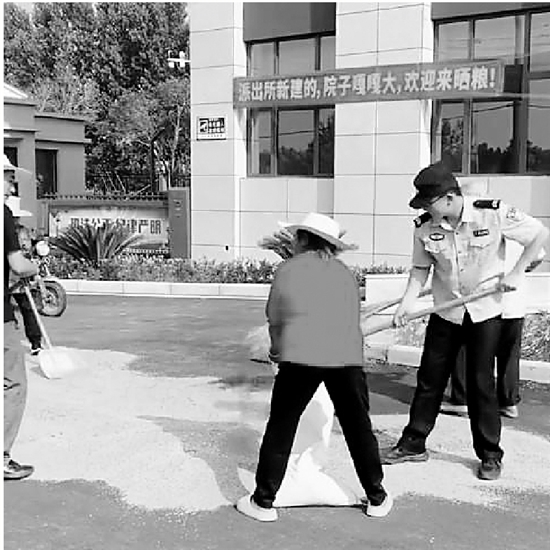 近日,湖北襄阳,随着麦子成熟,部分村民在省道晒起了麦子。出于安全考虑,当地派出所敞开大门,挂出横幅,邀请村民到院内打场晒粮。