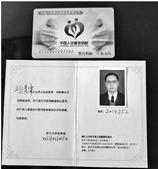 今年3月,刘清津不幸被检查出恶性肿瘤,此后,他开始频繁住院。每次去住院,他总是要嘱咐爱人,“记得把我的遗体捐赠证明带上,万一用得上。”