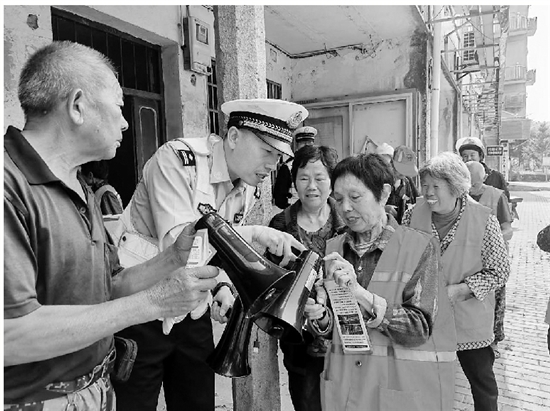 今年年初,中队率先在老年人人口众多的白水洋村试点,每天早上6点和傍晚8点两个时间段前后,环卫三轮车上的小喇叭都会在村里响起,简单的举动收获了良好的效果——今年前三个月,该村涉及老年人的交通事故发案同比下降90%。