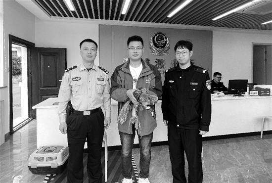 近日,金华金东公安澧浦派出所民警将村民在户外发现的一只受伤的国家二级保护动物白鹇,经初步护理后移交给金华市林业局陆生野生动物救护中心工作人员。该所深耕生态警务建设,全力保护野生动植物资源。 通讯员 郭艳婷 摄