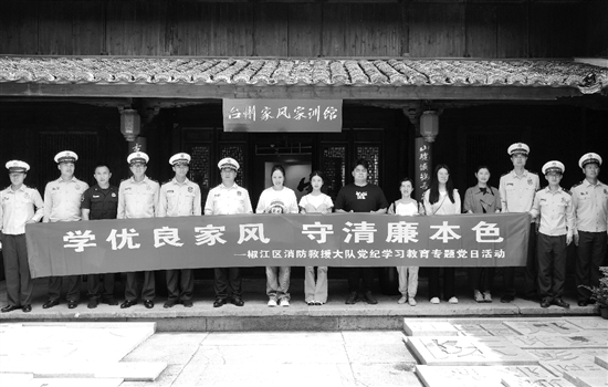近日,台州市椒江区消防救援大队组织开展党纪学习教育专题党日活动。消防员和家属走进台州家风家训教育馆,感受家风文化传承蕴藏的深刻内涵,营造单位和家庭共教共育氛围。 通讯员 林涛 摄