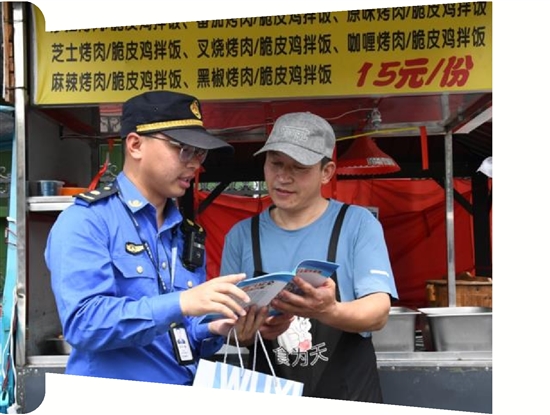 每天,经开物业公司的保洁员都会对摊位所在的路面卫生进行打扫;开发区中队联合相关部门会定期上门开展联合检查;平时,则由各摊主自荐选出的“点位长”负责对摊贩们进行监督……如此“一揽子”举措,让流动摊贩更好管了。