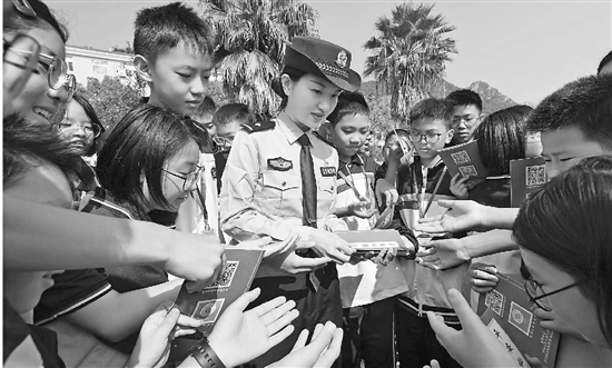 为提高学生识骗防骗意识,近日,临海市沿江派出所民警前往辖区中小学校开展反诈宣传,并发放宣传资料。 通讯员 李雨潞