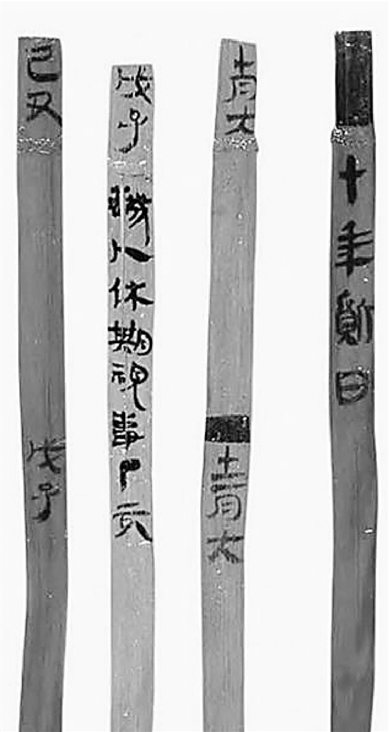 “质日”意为对质、检验日期。包括睡虎地77号汉墓在内,目前共发现7批23篇“质日”简册。这些简册在形制上保持一致,由先行书写的历表以及后来添加的文字构成,是国家行政运作的产物。“质日”简册事先根据时间顺序写好日干支,日干支是中国传统历法中的时间概念,代表具体的某一日。日干支之间有较大的空白,用于记录当日发生之事,若无事汇报则留白,如睡虎地汉简《十年质日》记载了四月“越人”中止出差,归家葬父之事,“己丑越人之邾。乙未父下席。戊戌越人道邾来。己亥归宁。甲辰父葬。乙巳越人视事”。“越人”是睡虎地77号汉墓的墓主名。邾为地名,西汉时期邾为江夏郡的属县。己丑(5日)“越人”因公前往邾。下席,指代死亡。出人意料的是,乙未(11日)“越人”的父亲去世了。戊戌(14日)“越人”不得已停止出差,于己亥(15日)回到家中处理丧事,在甲辰(20日)安葬好父亲后,第二天乙巳(21日)便返回官署履行职责。这清晰明了地解释了“越人”为何要在出差途中归家的缘由,避免构成渎职行为。